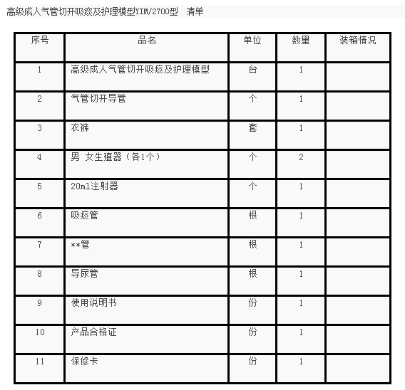 高級成人氣管切開吸痰及護(hù)理模型YIM/2700型保養(yǎng)、保修